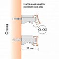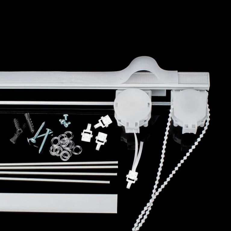 Благодаря использованию универсального пластикового кронштейна доступны любые варианты монтажа: к потолку, к стене, к стеновому кронштейну. Карниз имеет цепочный механизм управления: пластиковая цепь движется через привод вращения, передающий усилие на Х-образный поворотный стержень, который запускает ход кареток. Каретки обеспечивают вертикальное движение шторного полотна посредством лент, прикреплённых к его оборотной стороне.
