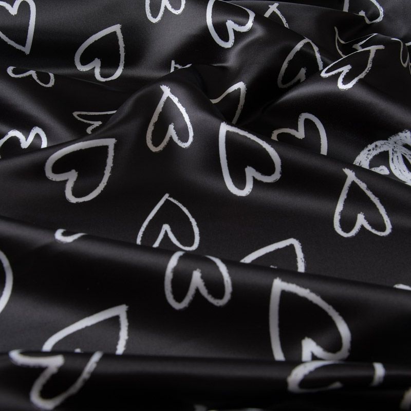 Атлас-тафта 001-11734 черный принтованный