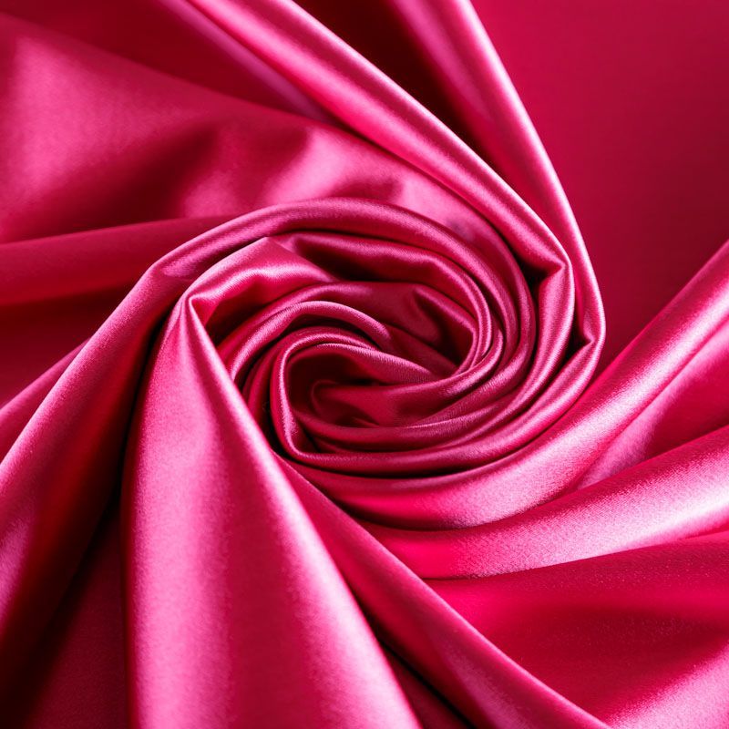 Итальянский костюмно-плательный атлас ватуссо ярко-розового оттенка. Ткань плотная, но пластичная, хорошо держит форму и отлично тянется, собирается в красивые складки и драпировки. Почти не мнется, очень удобный и практичный. Блеск умеренный, смотрится дорого, благородно. Подойдет для пошива прямых силуэтов-футляров, приталенных платьев с пышной юбкой и крупными драпировками, изделий с заложенными складками, нарядных изделий, вечерних костюмов, летнего пальто, юбки, для изготовления корсетов.
