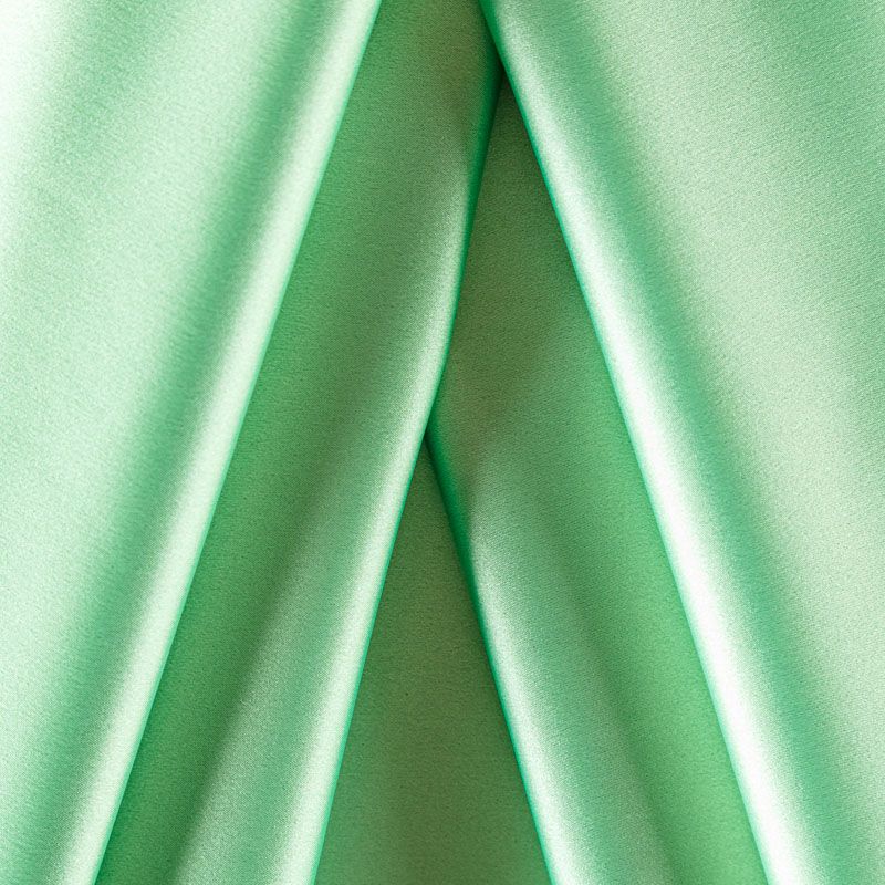 Итальянский костюмно-плательный атлас ватуссо зеленого оттенка. Ткань плотная, но пластичная, хорошо держит форму и отлично тянется, собирается в красивые складки и драпировки. Почти не мнется, очень удобный и практичный. Блеск умеренный, смотрится дорого, благородно. Подойдет для пошива прямых силуэтов-футляров, приталенных платьев с пышной юбкой и крупными драпировками, изделий с заложенными складками, нарядных изделий, вечерних костюмов, летнего пальто, юбки, для изготовления корсетов.