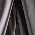 Итальянский костюмно-плательный атлас ватуссо серо-стального оттенка. Ткань плотная, но пластичная, хорошо держит форму и отлично тянется, собирается в красивые складки и драпировки. Почти не мнется, очень удобный и практичный. Блеск умеренный, смотрится дорого, благородно. Подойдет для пошива прямых силуэтов-футляров, приталенных платьев с пышной юбкой и крупными драпировками, изделий с заложенными складками, нарядных изделий, вечерних костюмов, летнего пальто, юбки, для изготовления корсетов.