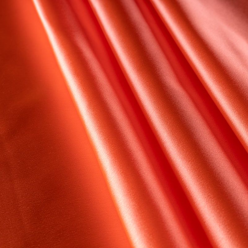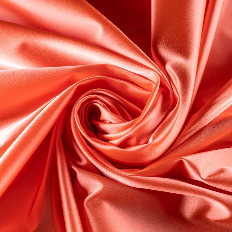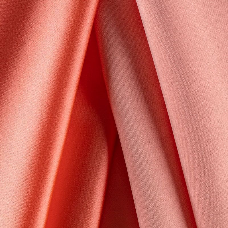 Итальянский костюмно-плательный атлас ватуссо яркого кораллового оттенка. Ткань плотная, но пластичная, хорошо держит форму и отлично тянется, собирается в красивые складки и драпировки. Почти не мнется, очень удобный и практичный. Блеск умеренный, смотрится дорого, благородно. Подойдет для пошива прямых силуэтов-футляров, приталенных платьев с пышной юбкой и крупными драпировками, изделий с заложенными складками, нарядных изделий, вечерних костюмов, летнего пальто, юбки, для изготовления корсетов.