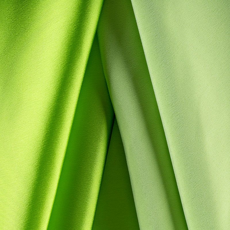 Итальянский костюмно-плательный атлас ватуссо насыщенного оттенка спелого лайма. Ткань плотная, но пластичная, хорошо держит форму и отлично тянется, собирается в красивые складки и драпировки. Почти не мнется, очень удобный и практичный. Блеск умеренный, смотрится дорого, благородно. Подойдет для пошива прямых силуэтов-футляров, приталенных платьев с пышной юбкой и крупными драпировками, изделий с заложенными складками, нарядных изделий, вечерних костюмов, летнего пальто, юбки, для изготовления корсетов.