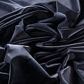 Хлопковый бархат припыленного синего оттенка. Ткань плотная, мягкая с коротким ворсом, отлично держит форму. Имеет благородный матовый оттенок. Подойдет для пошива нарядного костюма, жакета, юбки, жилета, шорт, комбинезонов, брюк, платья-футляр, легкого пальто или бомбера.