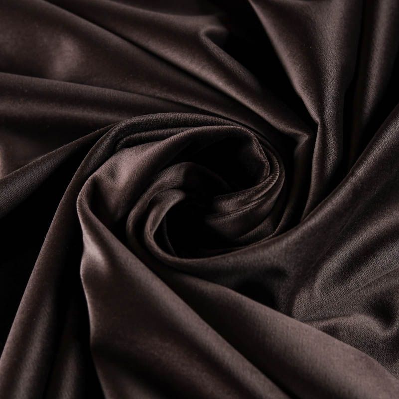 Плотный итальянский бархат на хлопковой основе благородного шоколадного оттенка с добавлением эластана. Ткань очень приятная на ощупь, поверхность матовая, имеет небольшой ворс, пластична, хорошо держит форму, а также прочна - идеальна для костюма, жакета, юбки, жилета, брюк, платья-футляра, легкого пальто, бомбера.