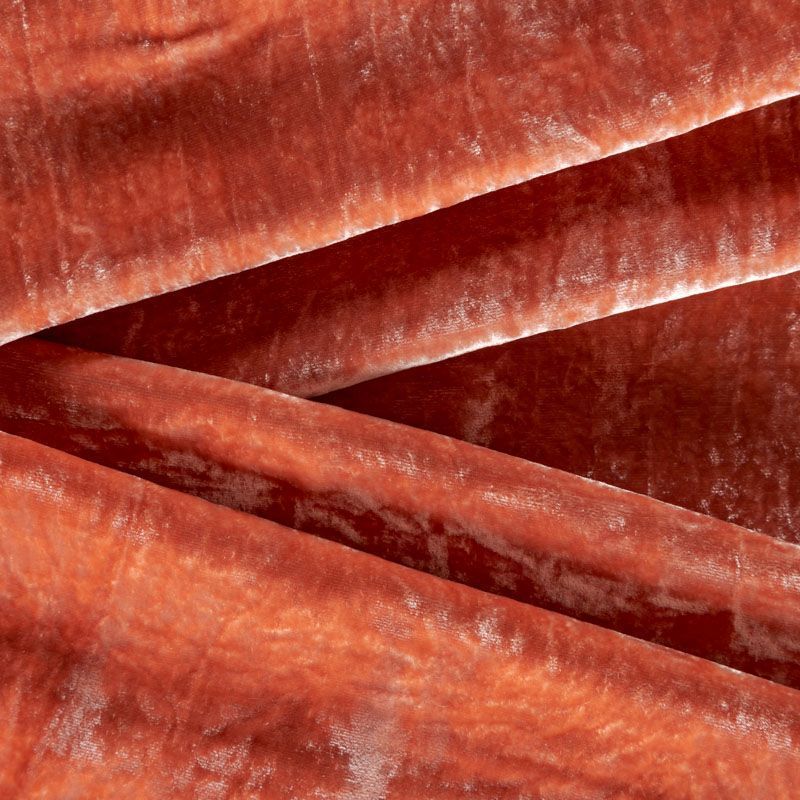 Итальянский бархат на шелковой основе в эффектном терракотовом оттенке. Ткань легкая, пластичная, мягкая, с коротким и блестящим ворсом, имеющим направление, очень приятная на ощупь, прекрасно драпируется. Подойдет для платья, юбки, туники, блузки, комбинезона, свободных брюк и костюма свободного кроя.