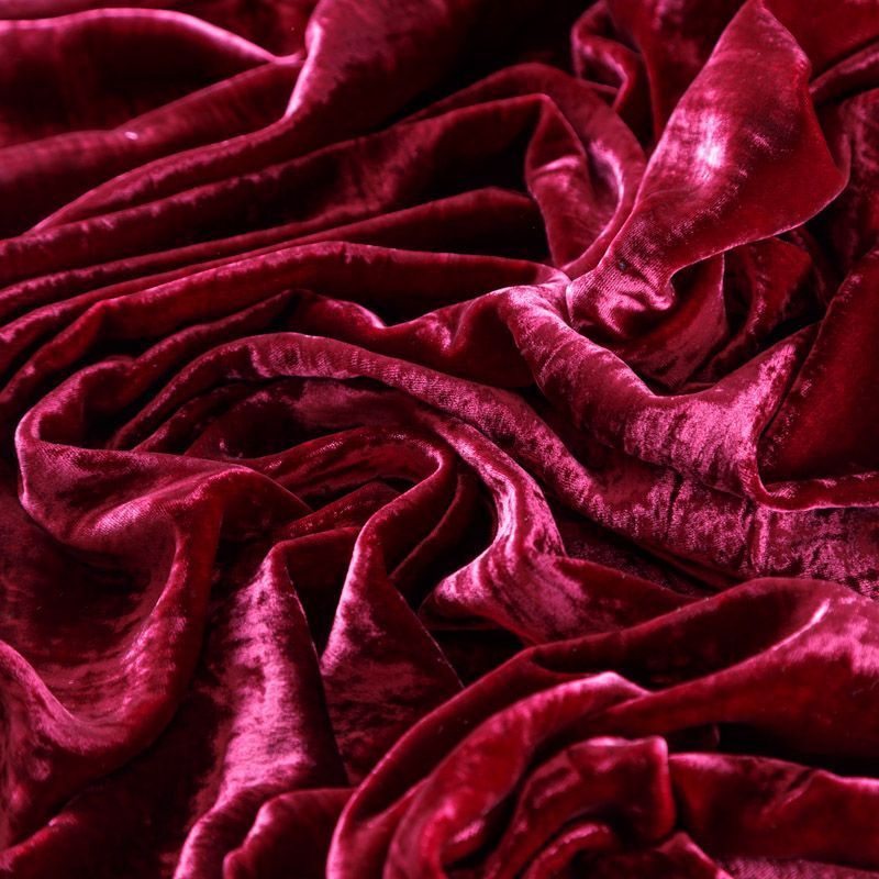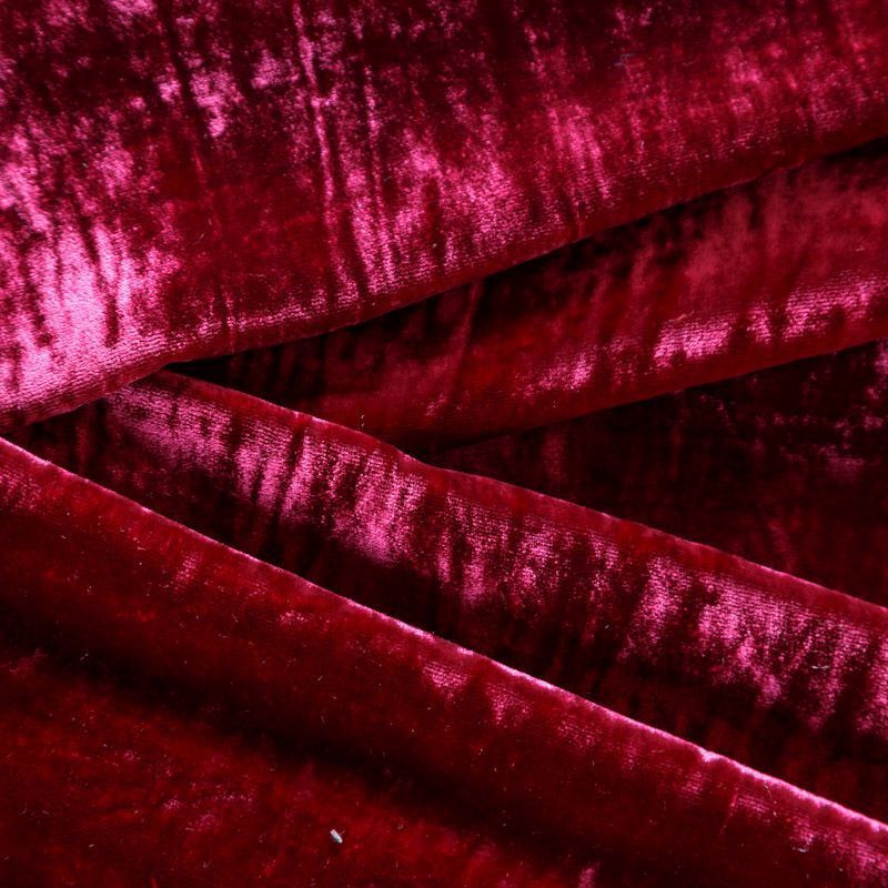 Итальянский бархат на шелковой основе в эффектном бордовом оттенке. Ткань легкая, пластичная, мягкая, с коротким и блестящим ворсом, имеющим направление, очень приятная на ощупь, прекрасно драпируется. Подойдет для платья, юбки, туники, комбинезона, свободных брюк и костюма свободного кроя.