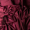 Бархат с выработкой в рубчик, как на вельвете цвета марсала с люрексовой нитью. Ткань очень приятна на ощупь, не мнется, мягкая, нежная, хорошо тянется и драпируется. Цвет играет отблесками и полутонами. Бархат идеально подходит для пошива вечерних платьев, юбок, костюмов, а также стильных аксессуаров.