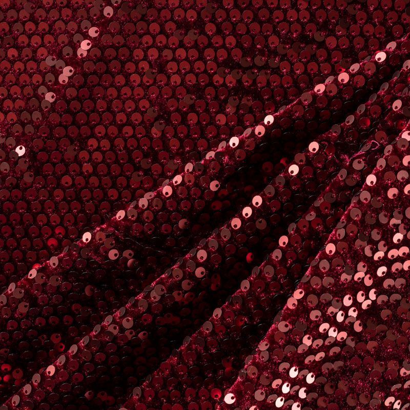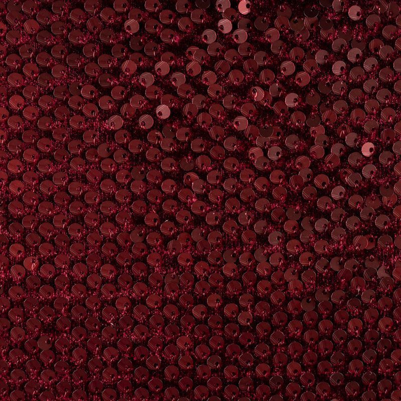 Бархатное полотно на трикотажной основе сочного оттенка гранатового сока. По всей поверхности ткань усеяна матовыми пайетками, которые очень деликатно отражают свет. Бархат достаточно тонкий и пластичный, прекрасно драпируется и укладывается в складки. Пайетки на бархате эффектно смотрятся в виде широких оборок и воланов, юбок прямого силуэта, свободных платьев-балахонов, курток, бомберов и топов с напусками.