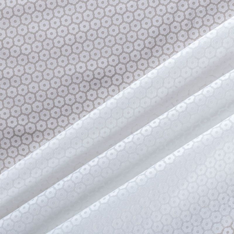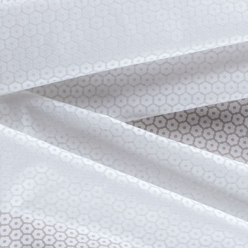 Оригинальный итальянский батист с эффектом деворе на белом фоне. Деворе - это особая вытравка, благодаря которой на ткани появляются полупрозрачные элементы. Ткань очень легкая, прозрачная, приятная на ощупь, нежная, пластичная, хорошо и мягко драпируется, летящая. Батист подойдёт для модных блуз с объёмными рукавами, летних платьев и сарафанов с длинной летящей юбкой, прозрачных рубашек, декорированных объёмными бантами, туник и топов.