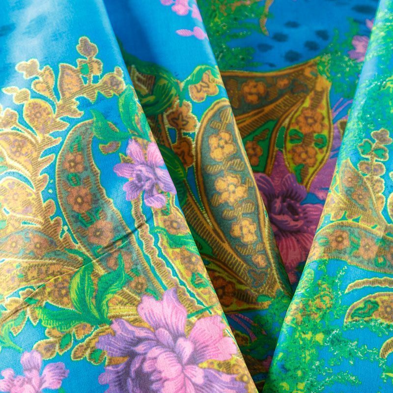Итальянский хлопковый батист с ярким принтом в желтых, сиреневых и зеленых оттенках. Ткань очень легкая, прозрачная, приятная на ощупь, нежная, пластичная, хорошо и мягко драпируется, летящая. Батист подойдёт для модных блуз с объёмными рукавами, летних платьев и сарафанов с длинной летящей юбкой, прозрачных рубашек, декорированных объёмными бантами, туник и топов.