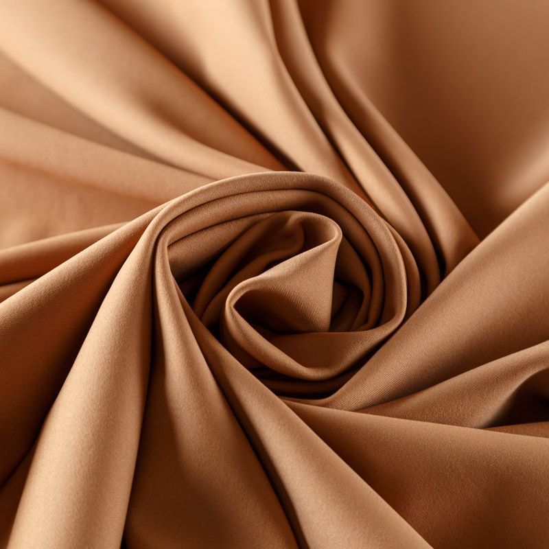 Итальянский плотный матовый бифлекс карамельного оттенка. Ткань отлично тянется во всех направлениях, не прозрачный, одежда из него не сковывает движения. Хорошо впитывает влагу и быстро высыхает, не вызывет аллергии и раздражения. Подойдет для пошива купальников, пляжных и коктейльных платьев, топов, боди, леггинсов, велосипедок и лосин, костюмов фигуристов, танцоров, гимнастов.