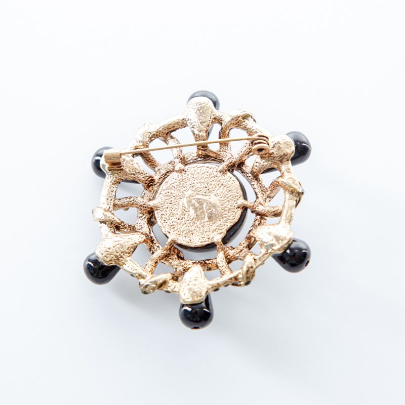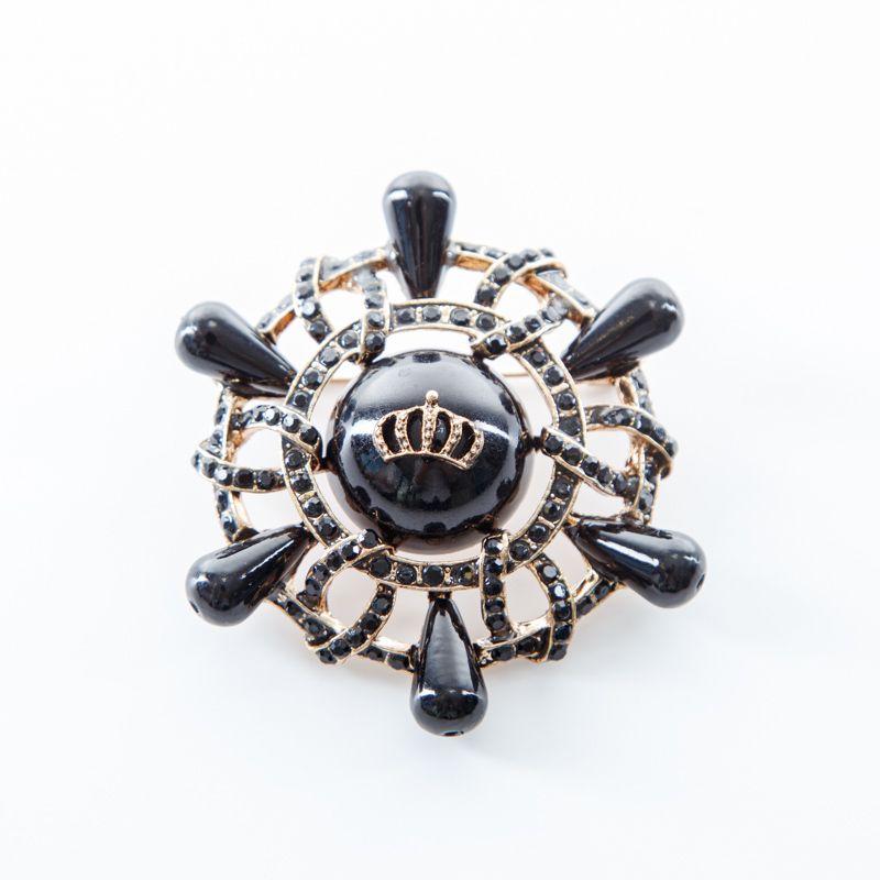 Брошь декоративная d60 мм стразы ACS0479 золотой/черный в Нарьян-Маре