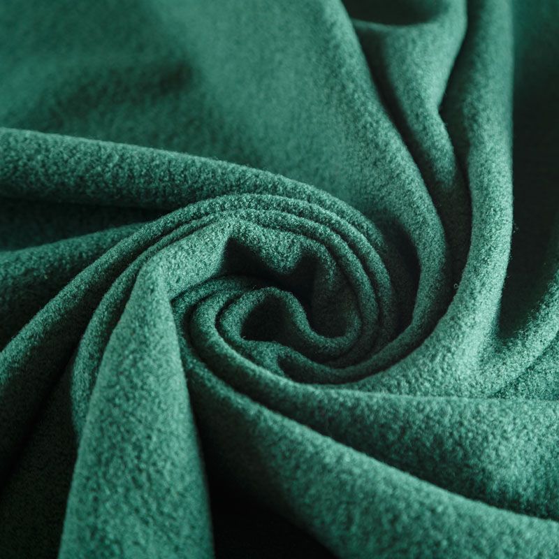 Итальянская мягкая, уютная и теплая шерстяная ткань с буклированной поверхностью зеленого оттенка. Хорошо держит форму, пластичная, плотная. Не мнется, отлично драпируется, устойчива к деформации. Отлично подойдет на пальто, кардиган, пончо, бомбер, теплый костюм и другие виды верхней одежды.