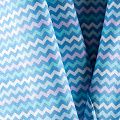 Плотная натуральная ткань с особым принципом переплетения нитей: крест-накрест. Имеет гладкую матовую поверхность чуть шероховатую на ощупь, не тянется, немного просвечивает. Прочная и стойкая к износу, надолго сохраняет яркость красок, не растягивается при стирке, практически не мнется. Цветной принт в виде чередующихся полос в форме зигзага на белом фоне прекрасно подойдет для пошива постельного белья, изготовления пеленок, бортиков для кроватки и других предметов домашней одежды и интерьера.