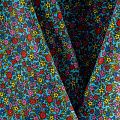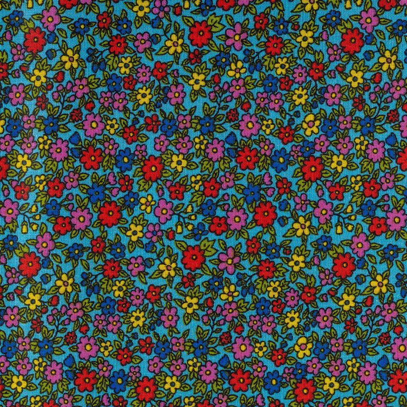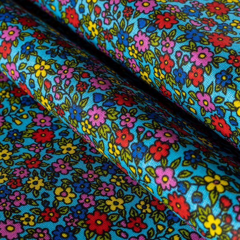 Плотная натуральная ткань с особым принципом переплетения нитей: крест-накрест. Имеет гладкую матовую поверхность, немного шероховатая на ощупь, не тянется, немного просвечивает. Прочная и стойкая к износу, надолго сохраняет яркость красок, практически не мнется. Мелкий цветочный принт на голубом фоне прекрасно подойдет для пошива домашней одежды, халатов, фартуков, сарафанов, постельного белья и других предметов интерьера.