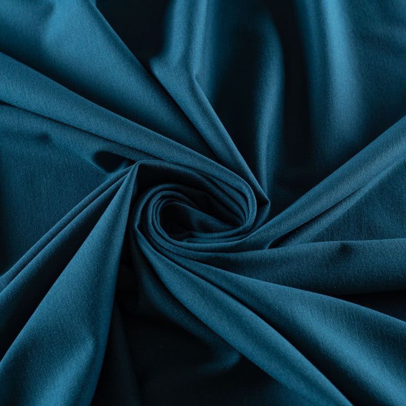 Итальянское трикотажное полотно качества пенье. Обе стороны ткани ровные, гладкие. Материал эластичный, имеет растяжимость по всем сторонам, хорошо держит форму, уютный, приятный к телу и удобный в носке. Применяется в пошиве платьев, юбок, костюмов, жакетов.