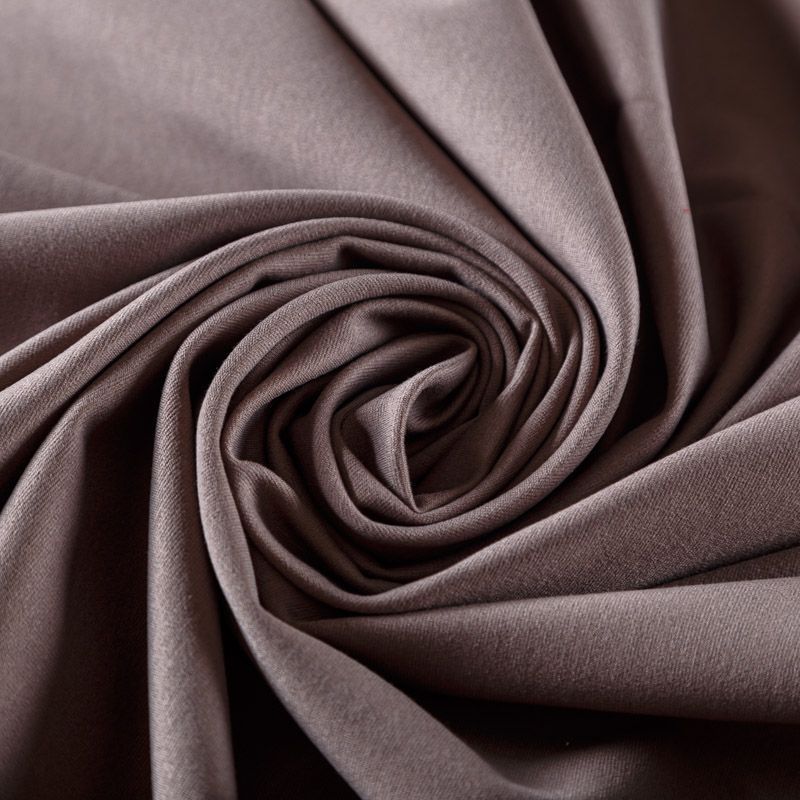 Вискозное трикотажное полотно средней плотности. Обе стороны ткани ровные, гладкие. Материал эластичный, упругий, имеет растяжимость по всем сторонам, держит форму, уютный, приятный к телу и удобный в носке. Применяется в пошиве платьев, юбок, костюмов, жакетов.