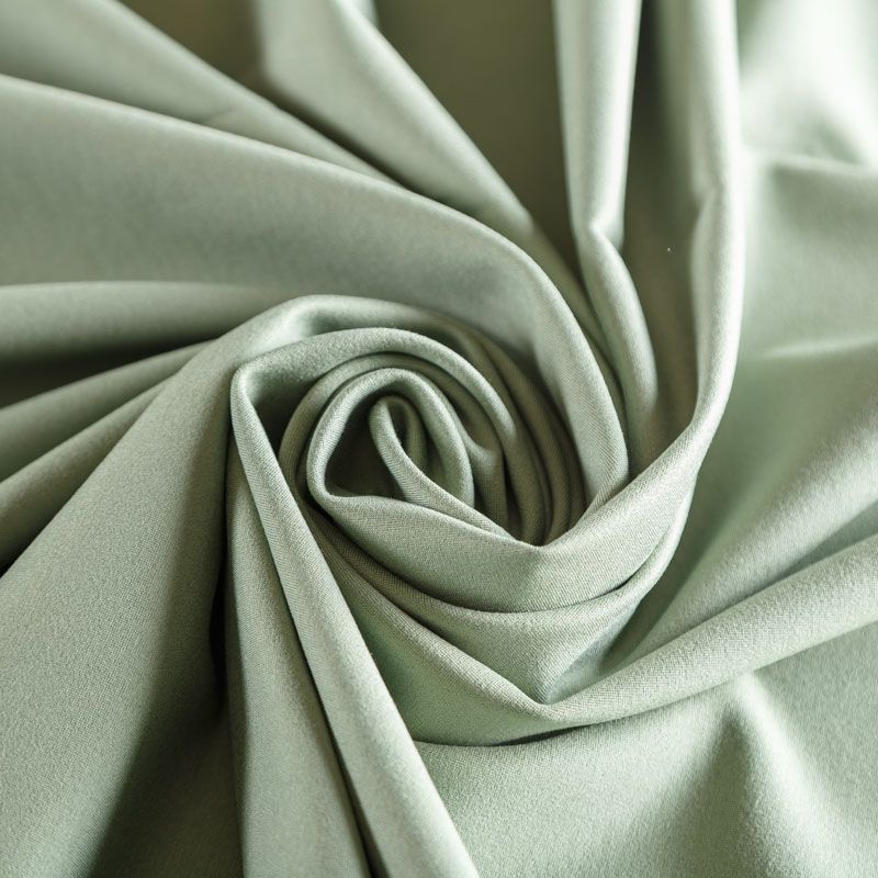 Трикотажное полотно средней плотности. Обе стороны ткани ровные, гладкие. Материал эластичный, упругий, имеет растяжимость по всем сторонам, хорошо держит форму, уютный, приятный к телу и удобный в носке. Подойдет для пошива платьев, юбок, костюмов, жакетов, брюк.