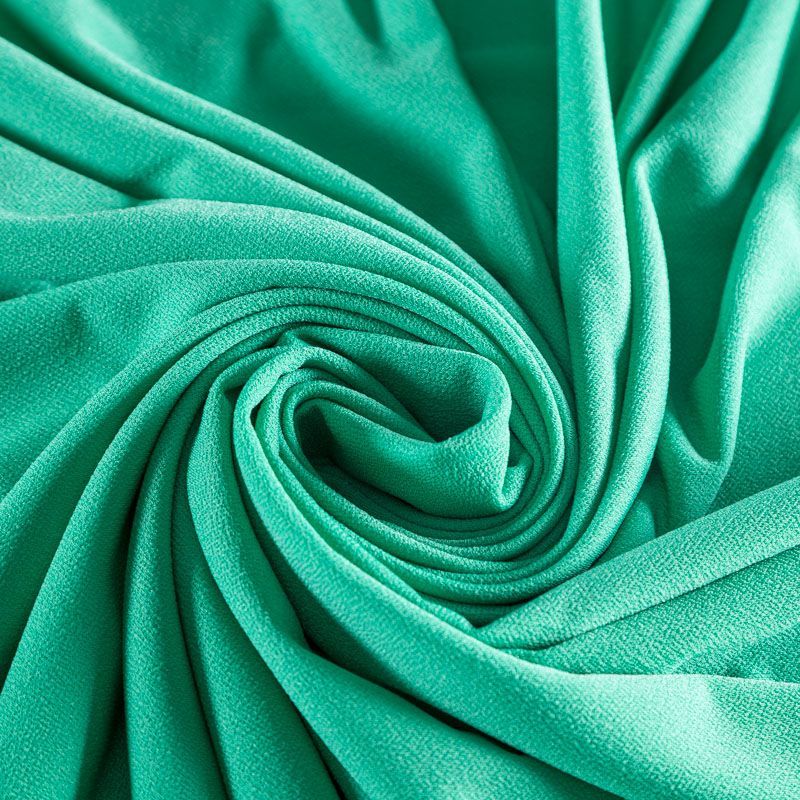 Плотное трикотажное полотно с фактурной креповой поверхностью. Материал эластичный, имеет растяжимость по всем сторонам, хорошо держит форму, уютный, приятный к телу и удобный в носке. Применяется в пошиве платьев, юбок, костюмов, жакетов.