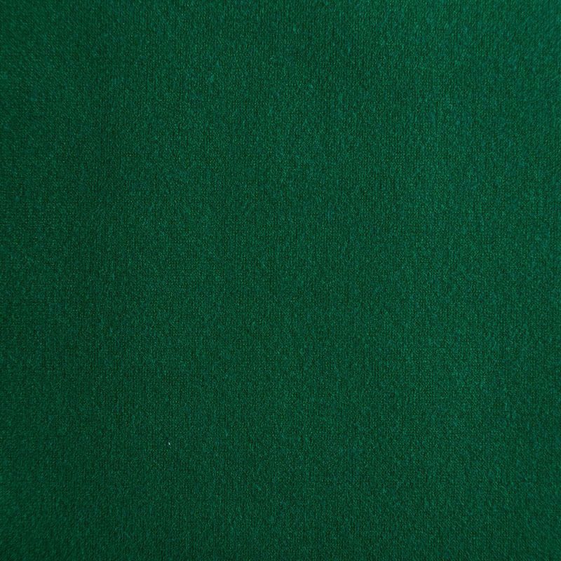 Эластичный, плотный хлопковый трикотаж изумрудного оттенка с теплым подтоном. Поверхность ткани гладкая и матовая, с изнанки - с шелковистым мягким ворсом.  Материал упругий, имеет растяжимость по всем сторонам, не просвечивается, хорошо держит форму, уютный, приятный к телу и удобный в носке. Применяется в пошиве костюмов, жакетов, кардиганов, платьев и юбок.