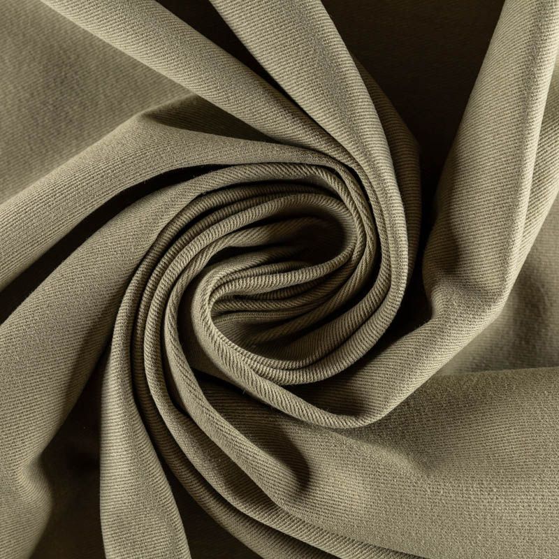 Поверхность ткани матовая, фактурная в диагональный рубчик. Материал имеет высокую плотность, при небольшой толщине, мягкий и приятный на ощупь, обладает устойчивостью к истиранию и механическим повреждениям. Подойдет для пошива рубашек, сарафанов, платьев, юбок, шорт, брюк-джоггеров, лёгких курток и жакетов.