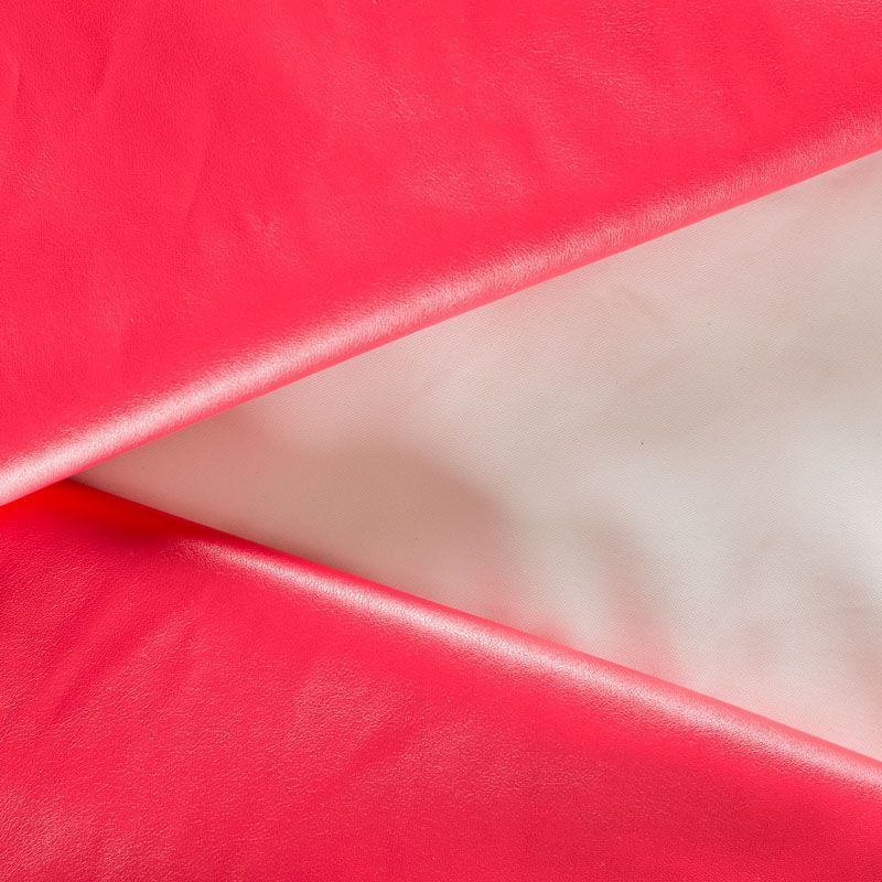 Искусственный материал, имитирующий натуральную кожу, на тканной основе. Изнаночная сторона - молочного оттенка. Экокожа тоньше натуральной, не мнется, пластична, тянется, хорошо облегает фигуру. Подойдет для пошива куртки, костюма, платья, юбки, брюк, шорт, комбинезона, сумки, рюкзака.