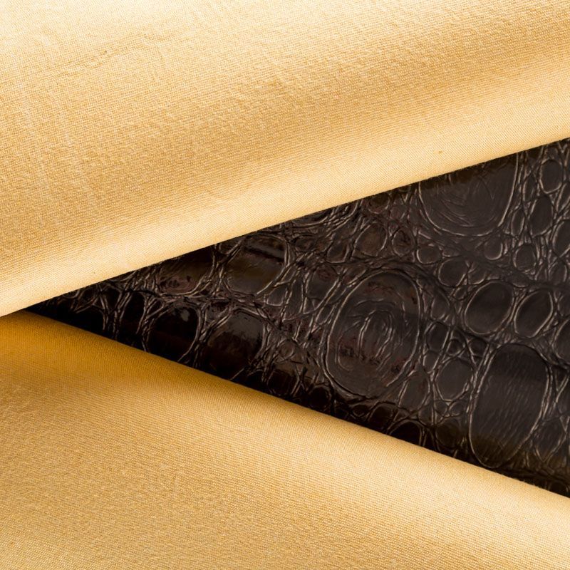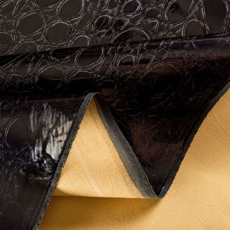 Искусственный материал, имитирующий натуральную лаковую кожу под рептилию на хлопковой основе. Изнаночная сторона - телесного оттенка. Экокожа плотная, не мнется, отлично держит форму, хорошо облегает фигуру. Подойдет для пошива куртки, пальто, юбки, сумки, рюкзака.