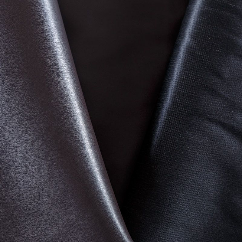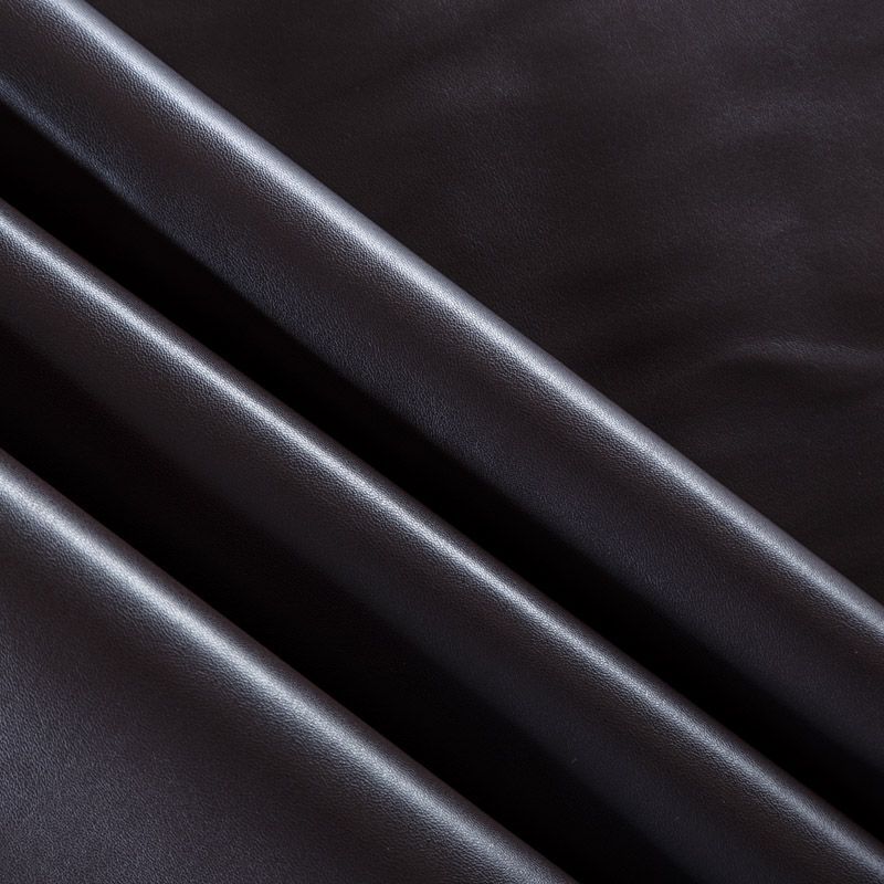 Искусственный материал, имитирующий натуральную кожу, на черной трикотажной основе. Экокожа тоньше натуральной, не мнется, пластична, хорошо облегает фигуру. Подойдет для пошива куртки, костюма, платья, юбки, брюк, шорт, комбинезона, сумки, рюкзака.