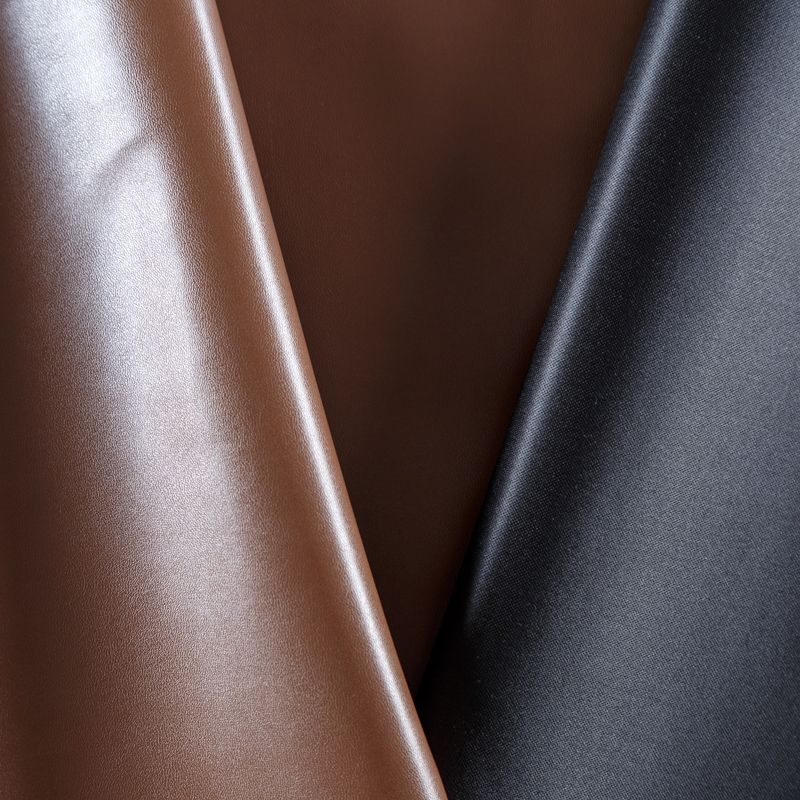 Искусственный материал, имитирующий натуральную кожу, на черной трикотажной основе. Экокожа тоньше натуральной, не мнется, пластична, хорошо тянется за счет эластана в составе, облегает фигуру. Подойдет для пошива куртки, костюма, платья, юбки, брюк, шорт, комбинезона, сумки, рюкзака.