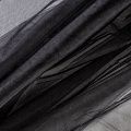 Мягкий фатин с матовой поверхностью. Неплохо драпируется в слегка держащие форму складки, имеет мелкое сетчатое плетение, прияный на ощупь, растягивается в ширину. Подойдет для пошива платья, юбки-пачки, фаты и других коктейльных и вечерних нарядов.