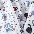 Износостойкий мягкий материал, не раздражает кожу, не садится, отлично впитывает влагу и хорошо удерживает тепло. На лицевой стороне мягкий ворс. Милый детский принт прекрасно подойдет для пошива постельного белья, изготовления пеленок, бортиков для кроватки, домашней одежды, пижамы и других предметов интерьера.