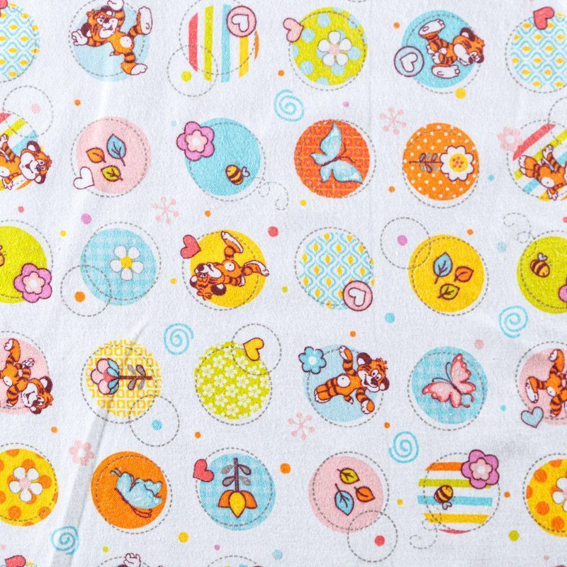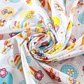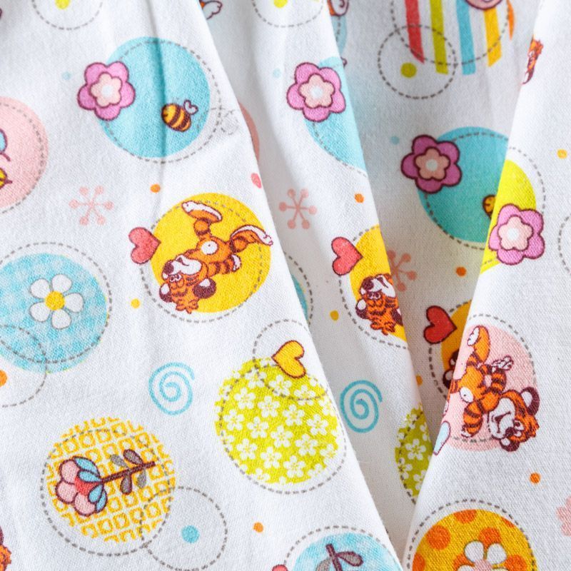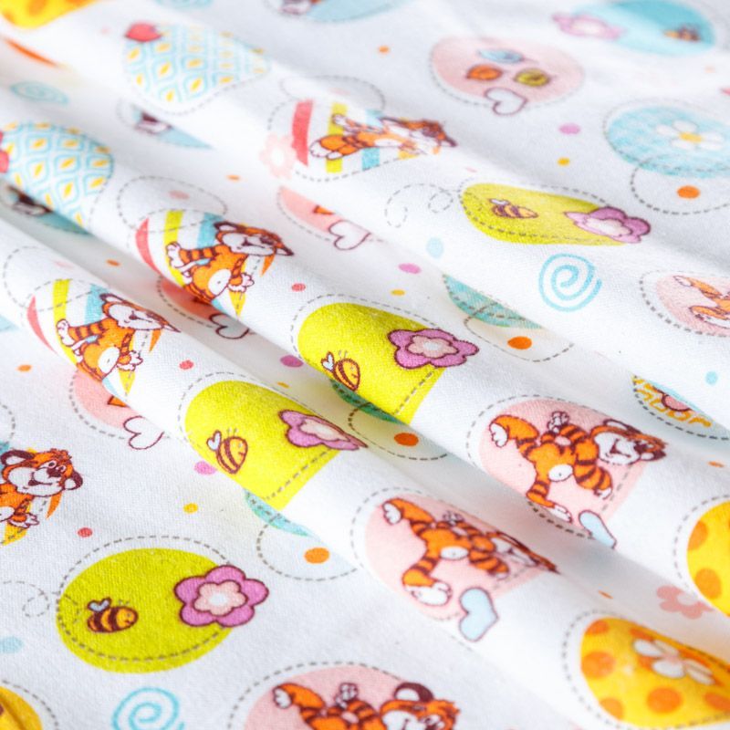 Износостойкий мягкий материал, не раздражает кожу, не садится, отлично впитывает влагу и хорошо удерживает тепло. На лицевой стороне мягкий ворс. Милый детский принт прекрасно подойдет для пошива постельного белья, изготовления пеленок, бортиков для кроватки, домашней одежды, пижамы и других предметов интерьера.