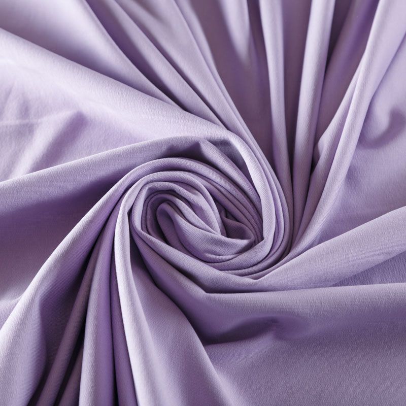Плотный, но мягкий эластичный трикотаж. Лицевая сторона гладкая, без блеска, мелкой вязки. Изнанка – с небольшим однородным ворсом или петля. Прекрасный вариант для пошива платьев и костюмов, легких толстовок, свитшотов, спортивной, детской и  домашней одежды.