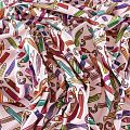Итальянский брендовый футер с ярким игривым принтом на бледно-розовом фоне. Материал гладкий с лицевой стороны, с изнаночной стороны имеет нежную мелкую петельчатую текстуру. Ткань мягкая и комфортная, достаточно эластичная, пластичная. Хорошо садится по фигуре. Практически не мнется. После растяжения быстро возвращается к прежней форме. Подойдет для пошива толстовки, спортивного костюма, джоггеров, шорт, свитшота, кроп-топа, платья в спортивном стиле.
