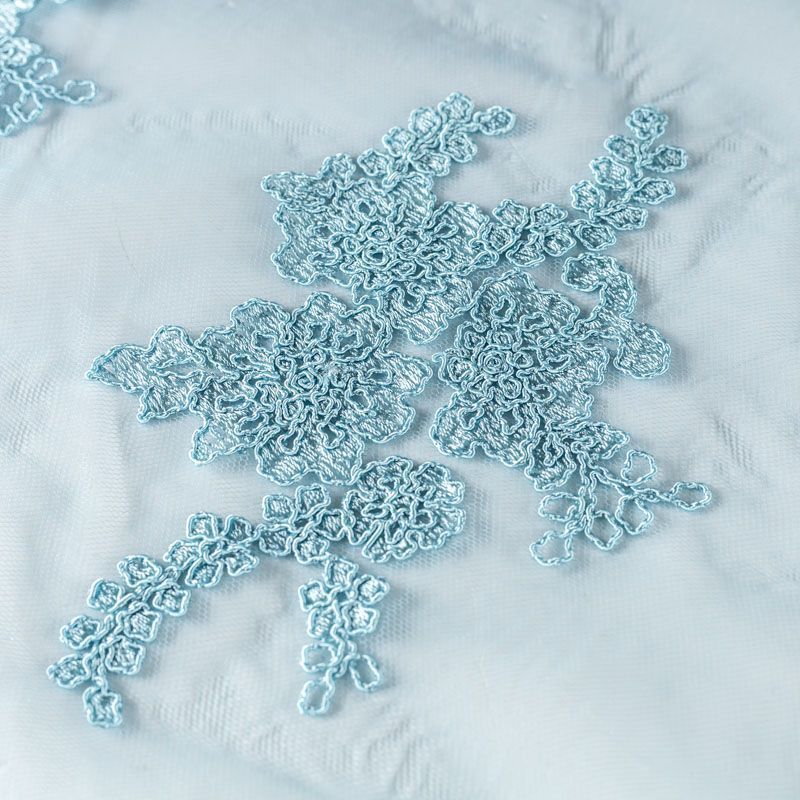 Вышивка на сетке приглушенного голубого оттенка с флористическим узором. Полотно мягкое, легкое и пластичное, хорошо тянется. Сетка не жесткая, приятная к телу. Узор вышит мягкой пряжей, образуя красивую фактуру, имитирующую ручную вышивку, и оформлен кордовой нитью. С обеих сторон ткань украшена симметричными фестонами, что придает полотну законченный и нарядный вид. Великолепно будет смотреться в нарядном вечернем платье, платье на выпускной бал, в блузках, топах. Набирается для изделя объемом.