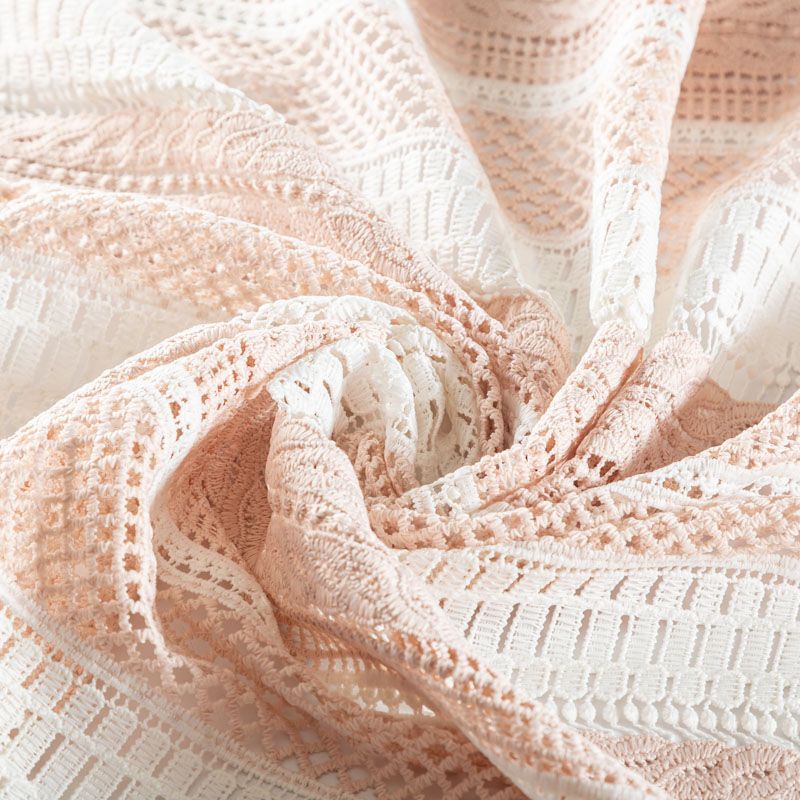 Гипюр-макраме представляет собой ажурное полотно, имеющее рельефную текстуру. На ощупь достаточно жесткий, держит форму. Требуется подклад. Всегда актуален при создании элегантных и роскошных нарядов, придавая им дороговизны и оригинальности. Может использоваться для пошива платьев, юбок, шорт, костюмов прямого кроя, изготовления декоративных элеметов. Набирается на изделие объемом.