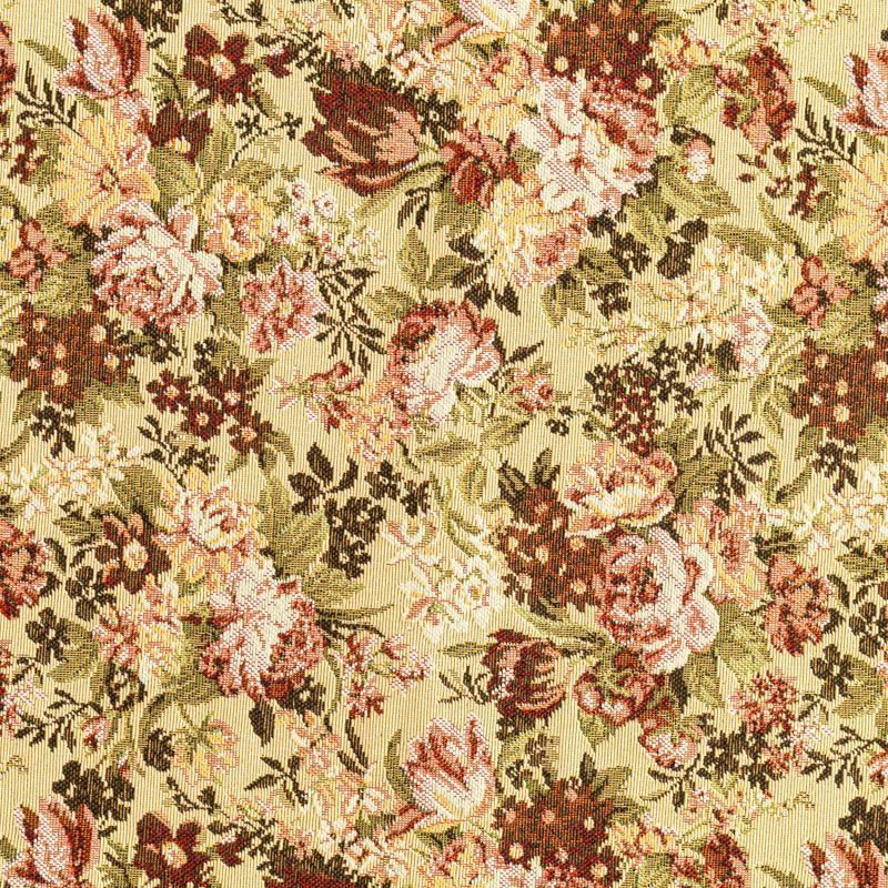 Гобелен представляет собой ткань, выполненную  перекрестным плетением нитей с одномоментным созданием сюжетной или орнаментальной композиции. Это плотный материал высокую прочность и износостойкость. Гобелен используют для пошива плотных светонепроницаемых штор, декоративного домашнего текстиля и аксессуаров, в мебельном производстве для обивки мебели. Так же применяется в рукоделии: модные кошельки, сумочки, пояса и другие аксессуары и при изготовлении дизайнерской одежды. Очень летний принт - букеты из садовых и полевых цветов на спокойном фоне натурального песочного оттенка.