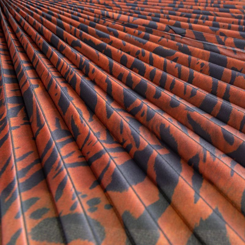 Готовый гофрированный купон из матовой креповой ткани терракотового оттенка с анималистичным принтом. Объем по низу 175 см, по талии 65 см, длина 110 см. Ткань раскроена полусолнцем, гофре заложено сверху вниз на увеличение. Ребро складки выделено черным цветом. Гофре визуально вытягивает и стройнит фигуру, именно поэтому уже который год юбки и платья гофре находятся в числе топовых вещей женского гардероба в классическом исполнении – миди и в пол, или в оригинальном ассиметричном крое. Можно использовать для клиновидной вставки в другую юбку, в спинку или рукав.