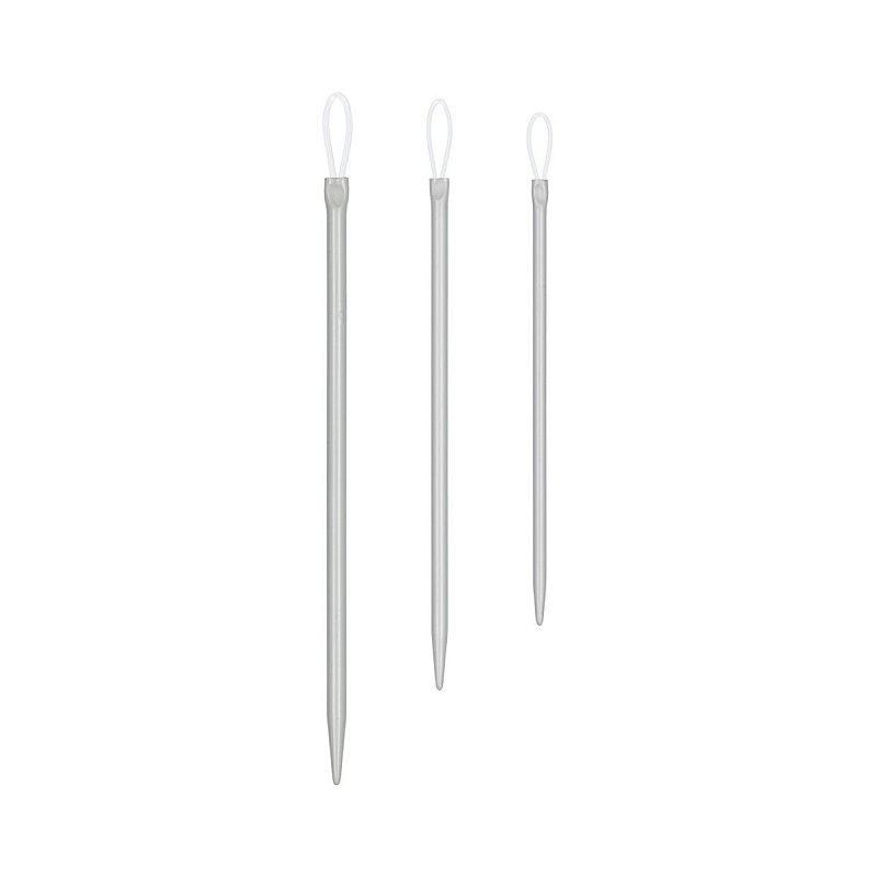 Иглы предназначены для сшивания вязаных изделий ниткой, пряжей любой толщины. Специальное покрытие обеспечивает хорошее скольжение нити. Широкое ушко позволяет легкого вдевать нить любой толщины. Иглы безопасные в использовании за счет закругленного кончика. В набор входят: 8, 9.2, 10.9 см.