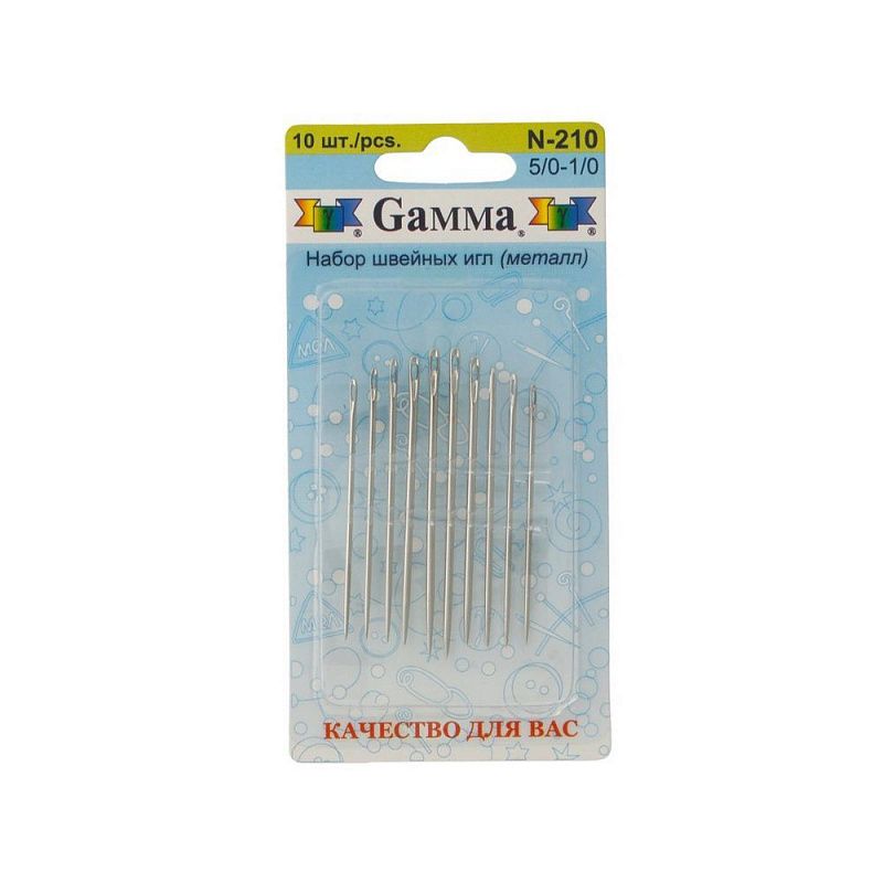 Иглы Gamma для шитья ручные острые №5/0-1/0 N-210 10шт