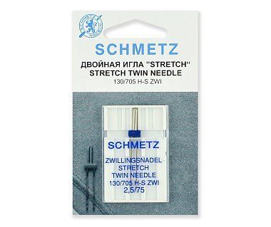 Двойные иглы стрейч № 75 предназначены для обработки края, выполнения декоративных и отделочных строчек на тонких эластичных материалах: лайкра, бифлекс, джерси. Подходят для бытовых швейных машин. Иглы имеют закругленное острие маленького диаметра. Стандарт: 130/705H-S.