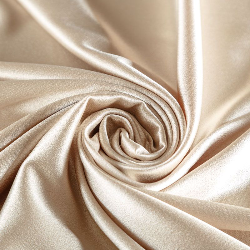 Итальянская ткань кади светло-золотистого оттенка. Кади — это креп-атлас с красивым глянцевым блеском. Ткань с плотной фактурой, роскошно ниспадает, очень хорошо тянется, изумительно садится по фигуре и шикарно смотрится в изделии. Она хорошо драпируется, эффектно облегает. Подходит для пошива удлиненных платьев с драпировками, платья-футляра, брюк палаццо, юбки-карандаш, жакета, туники, кроп-топа, а также для вечерних, свадебных и выпускных платьев и костюмов.