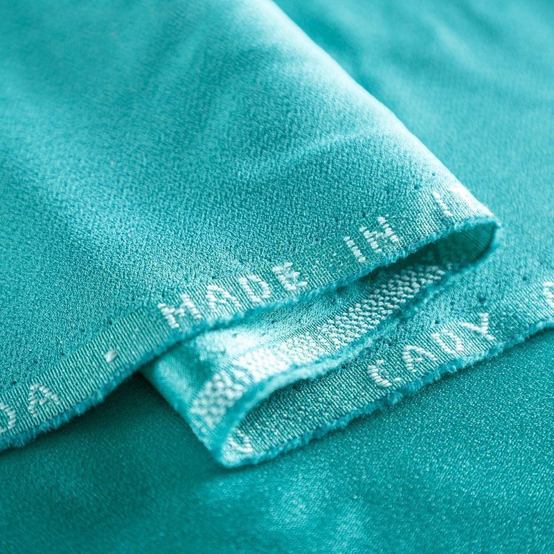 Итальянская ткань кади зеленого оттенка. Кади — это креп-атлас с красивым глянцевым блеском. Ткань с плотной фактурой, роскошно ниспадает, очень хорошо тянется, изумительно садится по фигуре и шикарно смотрится в изделии. Она хорошо драпируется, эффектно облегает. Подходит для пошива удлиненных платьев с драпировками, платья-футляра, брюк палаццо, юбки-карандаш, жакета, туники, кроп-топа, а также для вечерних, свадебных и  выпускных платьев и костюмов.