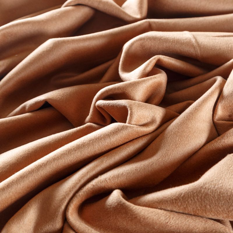 Итальянский пальтовый кашемир в классическом оттенке кэмел. Ткань мягкая, пластичная, приятная на ощупь, гибкая, средней толщины, при этом высокой плотности. Поверхность имеет короткий ворс. Подойдет для пошива пальто, куртки, жакета, парки, кейпа, жакета или пончо.