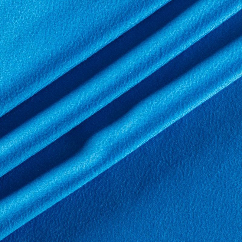Итальянский пальтовый кашемир голубого оттенка. Ткань мягкая, пластичная, приятная на ощупь, гибкая, средней толщины, при этом высокой плотности. Поверхность имеет короткий ворс с характерной волной. Подойдет для пошива пальто, куртки, жакета, парки, кейпа, жакета или пончо.