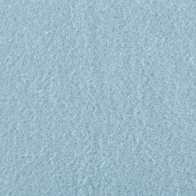 Пальтовый кашемир пастельного голубого оттенка. Ткань необычайно мягкая, приятная на ощупь, гибкая, средней толщины. Поверхность имеет короткий ворс. Подойдет для пошива пальто, куртки, жакета, парки, кейпа, жакета или пончо.