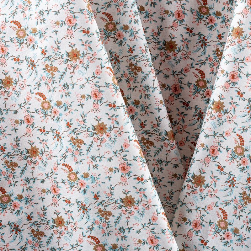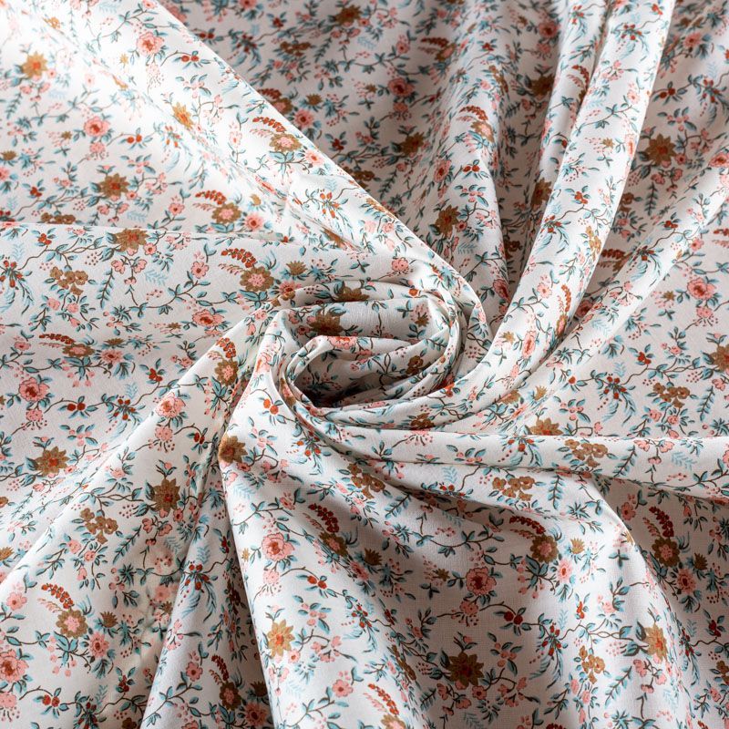 Плательно-рубашечный натуральный хлопок с цветочным узором коричнево-мятных тонах на молочном фоне. Ткань имеет плотное переплетение, матовую гладкую поверхность, хорошо держит форму, не прозрачная. Подойдет для пошива рубашек, платья-рубашки, юбки, сарафана, туники, домашней одежды.