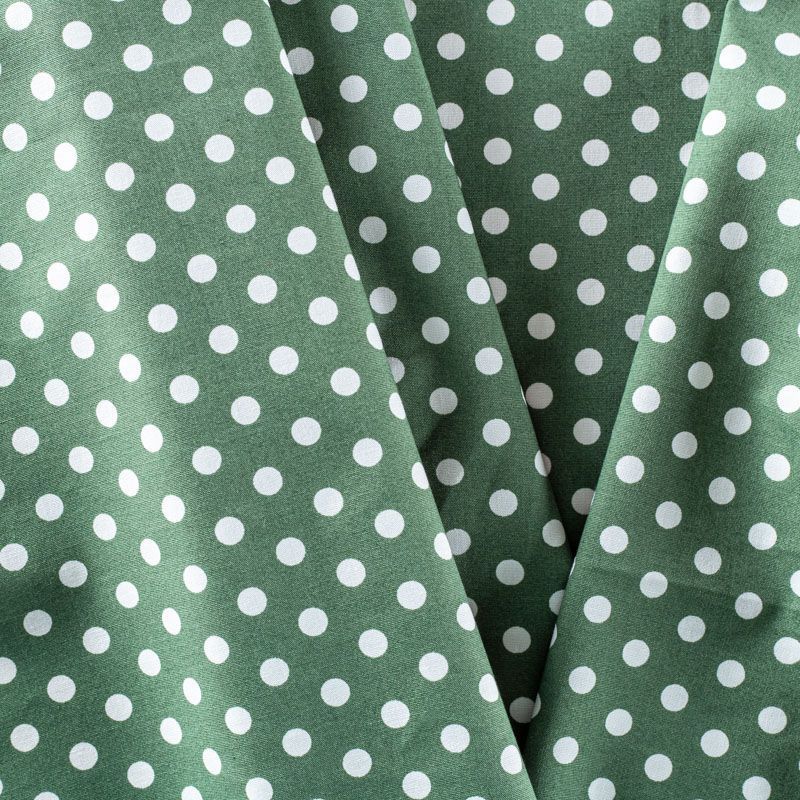 Плательно-блузочная ткань из натурального хлопка с принтом горох. Ткань легкая, тонкая, хорошо "дышит", мягкая, не прозрачная, немного тянется за счет эластана в составе. Подойдет для пошива летнего платья, летящей юбки, блузы, сарафана, комбинезона или рубашки.