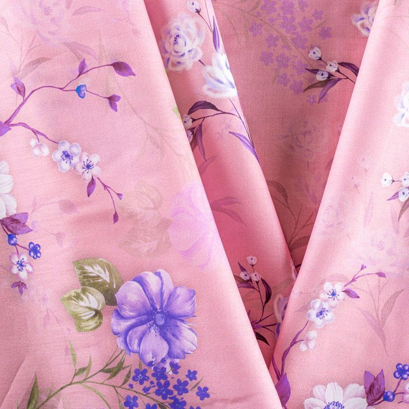 Плательно-рубашечный хлопок розовато-лилового оттенка с элегантным цветочным принтом. Ткань очень лёгкая, воздушная, тонкая, похожа на батист, немного прозрачная, поверхность матовая, гладкая, приятная к телу, хорошо драпируется. Прекрасно подойдет блузы, платья-рубашки, летнего сарафана, туники.